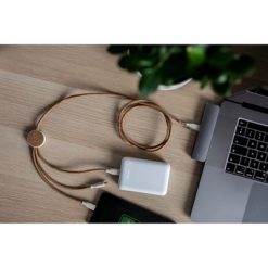 Korkowy kabel do ładowania BRIGHT, elementy z włókien słomy pszenicznej, długość 120 cm, 4 końcówki: 2x USB-C, micro USB oraz kompatybilna z urządzeniami iOS, moc maksymalna ładowania USB C do USB C 60W, pozostałe złącza 12W, końcówka USB-C z funkcją synchronizacji