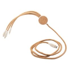 Korkowy kabel do ładowania B’RIGHT | Brent z nadrukiem Twojego logo, materiał: korek, słoma pszeniczna, kolor: neutralny