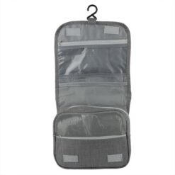 Kosmetyczka z wieloma przegrodami, przegroda główna na zamek błyskawiczny, 1 kieszeń siateczkowa, przezroczysta kieszeń oraz kieszeń przednia na zamek błyskawiczny, haczyk do powieszenia w komplecie