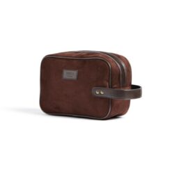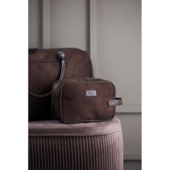 Kosmetyczka, wykonana z imitacji zamszu, detale ze skóry z PU oraz mosiądzu
