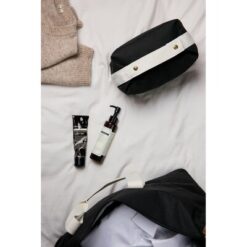 Kosmetyczka, przestronna przegroda główna, wykonana z materiałów z recyklignu, całkowita zawartość materiałów z recyklingu obliczona w oparciu o wagę całkowitą przedmiotu: 24%