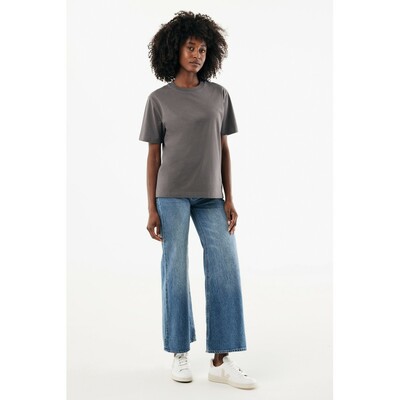 Koszulka, unisex, nowoczesny krój, okrągły dekolt, krótkie rękawy, wykonana w 50% z bawełny z recyklingu i w 50% z bawełny organicznej o gramaturze 220 g/m2, bez dodatku poliestru, posiada wbudowany znacznik AWARE™, który potwierdza wykorzystanie materiałów z recyklingu, posiada kod QR na metce, który prowadzi do cyfrowego paszportu produktu, 2% wpływów z każdego sprzedanego produktu jest przekazywane na rzecz Water.org