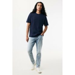 Koszulka, unisex, nowoczesny krój, okrągły dekolt, krótkie rękawy, wykonana w 50% z bawełny z recyklingu i w 50% z bawełny organicznej o gramaturze 220 g/m2, bez dodatku poliestru, posiada wbudowany znacznik AWARE™, który potwierdza wykorzystanie materiałów z recyklingu, posiada kod QR na metce, który prowadzi do cyfrowego paszportu produktu, 2% wpływów z każdego sprzedanego produktu jest przekazywane na rzecz Water.org