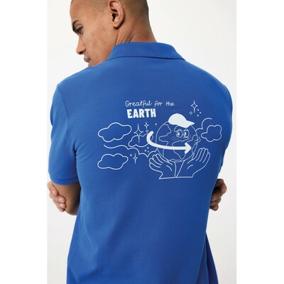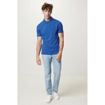 Koszulka polo z bawełny z recyklingu Iqoniq Yosemite z nadrukiem Twojego logo, materiał: bawełna, kolor: niebieski