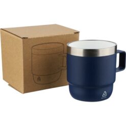 Kubek 180 ml, z uchwytem ułatwiającym picie, ikona recyklingowej stali nierdzewnej na produkcie, zapakowany pojedynczo w brązowe kartonowe pudełko, produkt wykonany z recyklingowej stali nierdzewnej (wewnątrz 304 / na zewnątrz 201) z powłoką ceramiczną wewnątrz
