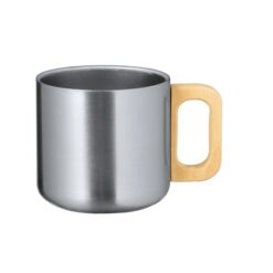 Kubek 400 ml wykonany ze stali nierdzewnej z recyklingu, podwójne ścianki, drewniany uchwyt