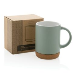 Kubek ceramiczny 280 ml, korkowa podstawa, nie należy używać w kuchence mikrofalowej, zalecane mycie ręczne, ślad węglowy produktu: 1,39 kg CO2