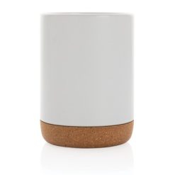 Kubek ceramiczny 280 ml, korkowa podstawa, nie należy używać w kuchence mikrofalowej, zalecane mycie ręczne, ślad węglowy produktu: 1,39 kg CO2