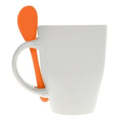 Kubek ceramiczny 300 ml z łyżeczką z nadrukiem Twojego logo, materiał: ceramika, kolor: pomarańczowy