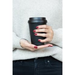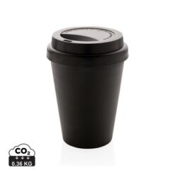 Kubek termiczny 300 ml, lekki, trwały i wielokrotnego użytku, wykonany z materiału PP w 100% nadającego się do recyklingu, podwójne ścianki, zakręcane wieczko, odporny na temperaturę do 100 stopni Celsjusza, wyłącznie mycie ręczne, ślad węglowy produktu: 0,36 kg CO2
