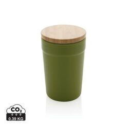 Kubek podróżny 300 ml z PP z recyklingu z nadrukiem Twojego logo, materiał: bambus, kolor: zielony