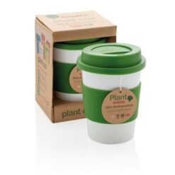 Kubek podróżny 350 ml, wykonany z PLA, silikonowe wieczko i uchwyt, można myć w zmywarce, ślad węglowy produktu: 0,77 kg CO2