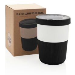 Kubek podróżny 380 ml Coffee to go z PLA z nadrukiem Twojego logo, materiał: silikon, kolor: czarny