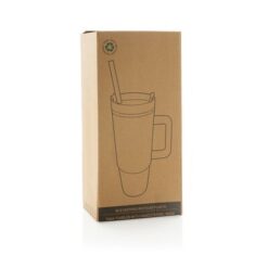 Kubek podróżny 750 ml, ergonomiczny uchwyt, obrotowe wieczko trzema pozycjami (dziubek do picia, otwór na słomkę, zamknięte), wykonany z materiałów z recyklingu, całkowita zawartość materiałów obliczona na podstawie wagi całkowitej przedmiotu: 80%, wyłącznie mycie ręczne, w pudełku z papieru kraftowego z certyfikatem FSC®