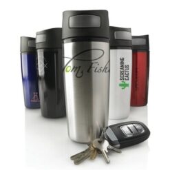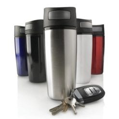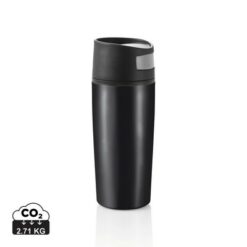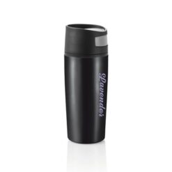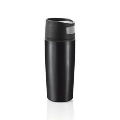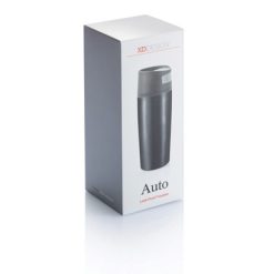 Kubek termiczny 300 ml, stal nierdzewna na zewnątrz, wnętrze z PP, szczelne wieczko z przyciskiem z boku, nie wymaga obsługi oburącz, utrzymuje temperaturę napojów gorących do 4 godzin, wzór zastrzeżony®