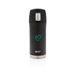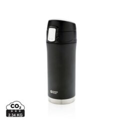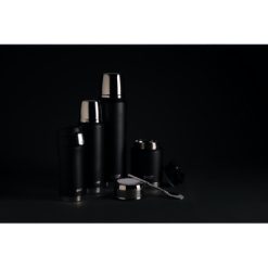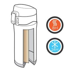 Kubek termiczny 300 ml, podwójne ścianki z próżnią między ściankami, wnętrze ze stali nierdzewnej 18/8, powlekany proszkowo czarny kolor cechujący się niezwykłą trwałością i odpornością na wyblaknięcie czy popękanie, ściana wewnętrzna pokryta miedzią o wysokim poziomie przewodnictwa, szczelny, zamykane wieczko, wyłącznie mycie ręczne, utrzymuje temperaturę napojów gorących do 15 godzin oraz zimnych do 24 godzin
