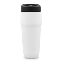Kubek termiczny 400 ml Air Gifts, posiada podwójne ścianki ze stali nierdzewnej i ceramiki z próżnią między ściankami, co spowalnia oddawanie temperatury na zewnątrz, zachowując funkcje termosu, plastikowe wieczko z przyciskiem otwarcia/zamknięcia ustnika umożliwiającym obsługę jedną ręką, wieczko może zostać rozkręcone w celu ułatwienia czyszczenia, matowe wykończenie, produkt wykonany ze stali nierdzewnej, ceramiki i plastiku, utrzymuje temperaturę napojów gorących do 15 godzin +leakproof