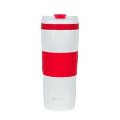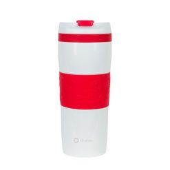 Kubek termiczny 400 ml Air Gifts, posiada podwójne ścianki ze stali nierdzewnej z miedzianą izolacją próżniową, co spowalnia oddawanie temperatury na zewnątrz, zachowując funkcje termosu, plastikowe wieczko z zamknięciem umożliwiającym obsługę jedną ręką, kolorowy silikonowy uchwyt zwiększający wygodę użytkowania, błyszczące wykończenie, utrzymuje temperaturę napojów gorących do 10 godzin +leakproof