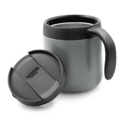 Kubek termiczny 400 ml z rączką | Wyatt z nadrukiem Twojego logo, materiał: plastik, stal nierdzewna, stal, kolor: szary