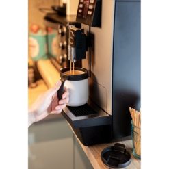 Kubek termiczny 400 ml z rączką, podwójne ścianki ze stali nierdzewnej z próżnią między ściankami, plastikowe wieczko, nie wymaga obsługi oburącz, matowe wykończenie, klasa termiczna: 2
