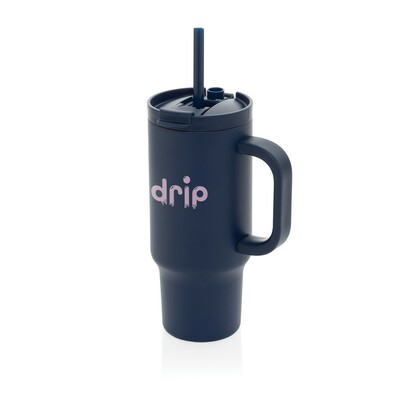 Kubek termiczny 480 ml, podwójne ścianki z próżnią pomiędzy dzięki czemu kubek posiada funkcję termosu, posiada słomkę i szeroki otwór do picia, wykonany z materiałów z recyklingu, całkowita zawartość materiałów z recyklingu obliczona na podstawie wagi całkowitej produktu: 73%