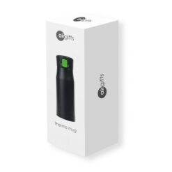 Kubek termiczny 550 ml Air Gifts, posiada podwójne ścianki ze stali nierdzewnej z miedzianą izolacją próżniową, co spowalnia oddawanie temperatury na zewnątrz, zachowując funkcje termosu, wieczko z blokadą i przyciskiem otwarcia ustnika umożliwiającym obsługę jedną ręką, utrzymuje temperaturę napojów gorących do 20 godzin +leakproof