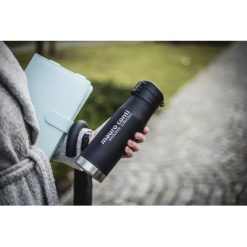 Kubek termiczny 600 ml Mauro Conti | Brian z nadrukiem Twojego logo, materiał: plastik, stal nierdzewna, stal, kolor: czarny