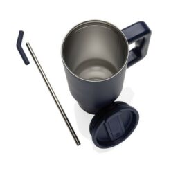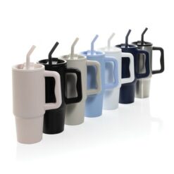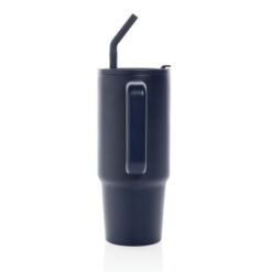 Kubek termiczny 900 ml, wykonany ze stali nierdzewnej z recyklingu, podwójne ścianki ze stali nierdzewnej z próżnią pomiędzy, zakręcane wieczko z dziubkiem i słomką, zalecane mycie ręczne, ślad węglowy produktu: 0 kg CO2