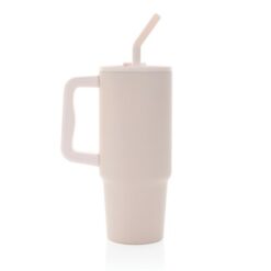 Kubek termiczny 900 ml, wykonany ze stali nierdzewnej z recyklingu, podwójne ścianki ze stali nierdzewnej z próżnią pomiędzy, zakręcane wieczko z dziubkiem i słomką, zalecane mycie ręczne, ślad węglowy produktu: 0 kg CO2