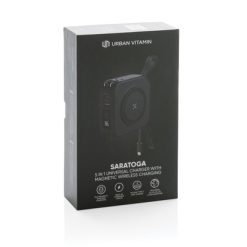 Ładowarka 5 w 1 Urban Vitamin Saratoga z nadrukiem Twojego logo, materiał: plastik, tpe, kolor: czarny