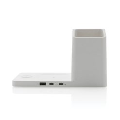 Ładowarka bezprzewodowa 3 w 1 15W Ontario, plastik z recykignu z nadrukiem Twojego logo, materiał: bambus, kolor: biały