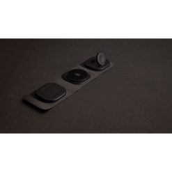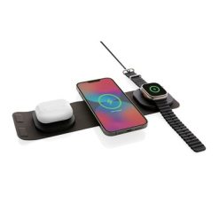 Ładowarka bezprzewodowa 3 w 1, magnetyczna ładowarka bezprzewodowa do telefonu 15W, ładowarka bezprzewodowa 5W do słuchawek i innej drobnej elektroniki, ładowarka bezprzewodowa 2,5W do smartwatcha (działa tylko z urządzeniami iOS), składana, działa z telefonami posiadającymi możliwość ładowania indukcyjnego, wykonana z ABS z recyklingu z certyfikatem RCS, całkowita zawartość materiałów z recyklingu obliczona w oparciu o wagę całkowitą przedmiotu: 38%, wejście 9V/1.1A, wyjścia: 9V/1.1A, 5V/1A, 5V/0.5A, w pudełku z papieru kraftowego z certyfikatem FSC®, ślad węglowy produktu: 1,95 kg CO2