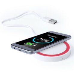 Ładowarka bezprzewodowa 5W z nadrukiem Twojego logo, materiał: plastik, kolor: czerwony