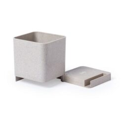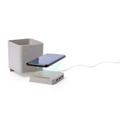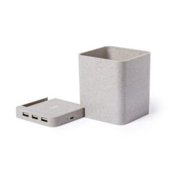 Ładowarka bezprzewodowa 5W z włókien słomy pszenicznej, działa z urządzeniami posiadającymi możliwość ładowania indukcyjnego, stojak na telefon, wejście micro USB 5V/2A, hub USB 2.0 z 3 portami, wyjście USB 5V/1A, pojemnik na przybory do pisania, kabel micro USB w komplecie
