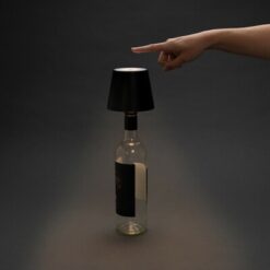 Lampka na butelkę, lampka na biurko, lampka stołowa, wykonana z ABS i metalu z recyklingu, 3 tryby świecenia, 31 diod LED, jasność 120 lumenów, wbudowany akumulator o pojemności 1200 mAh umożliwia świecenie do 4 godzin na jednym ładowaniu, ponowne ładowanie w 2 godziny, ładowana przez USB C, kabel 80 cm z TPE z recyklingu w komplecie, całkowita zawartość materiałów z recyklingu obliczona w oparciu o wagę całkowitą przedmiotu: 32%, w pudełku z certyfikatem FSC® mix