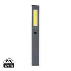 Latarka COB LED, lampka inspekcyjna, magnes z tyłu obudowy, jasność światła COB do 220 lumenów, LED do 80 lumenów, wykonana z materiałów z recyklingu, całkowita zawartość materiałów z recyklingu obliczona na podstawie wagi całkowitej przedmiotu: 36%, wbudowana bateria 520 mAh, 3 tryby świecenia, wejście USB typu C, czas świecenia na jednym ładowaniu do 3 godzin, ślad węglowy produktu: 0 kg CO2