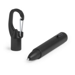 Latarka 1 LED, długopis i karabińczyk z nadrukiem Twojego logo, materiał: plastik, kolor: czarny