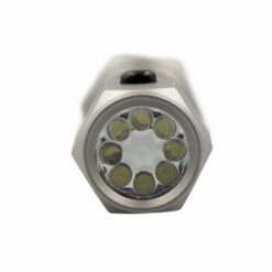 Latarka bezpieczeństwa o mocy 60 lumenów, posiada młotek bezpieczeństwa oraz przecinak do pasów bezpieczeństwa, produkt wykonany z aluminium