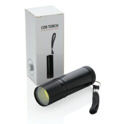 Latarka COB z nadrukiem Twojego logo, materiał: plastik, aluminium, kolor: czarny