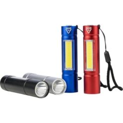 Latarka COB z nadrukiem Twojego logo, materiał: aluminium, poliester, kolor: czarny
