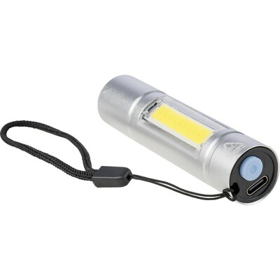 Latarka COB z nadrukiem Twojego logo, materiał: aluminium, poliester, kolor: srebrny