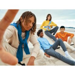 Lekki sweter, unisex, regularny krój, okrągły dekolt, długie rękawy, wykonana w 30% z bawełny z recyklingu i w 70% z bawełny organicznej o gramaturze 280 g/m2, posiada wbudowany znacznik AWARE™, który potwierdza wykorzystanie materiałów z recyklingu, posiada kod QR na metce, który prowadzi do cyfrowego paszportu produktu, 2% wpływów z każdego sprzedanego produktu z kolekcji Impact jest przekazywane na rzecz Water.org, ślad węglowy produktu: 7,04 kg CO2