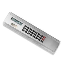 Linijka, kalkulator z nadrukiem Twojego logo, materiał: plastik, guma, kolor: srebrny