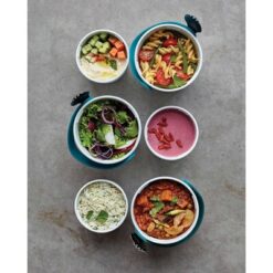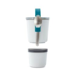 Miska śniadaniowa składa się z dwóch wodoszczelnych pojemników, które można połączyć ze sobą w celu przenoszenia, posiada silikonowy pasek do przenoszenia, który utrzymuje również łyżkę z funkcją widelca ze stali nierdzewnej, dostosowane do użytku w kuchence mikrofalowej, można myć w zmywarce z wyjątkiem tritanowej pokrywki