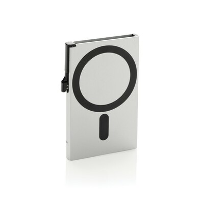 Magnetyczne etui na kartę kredytową, ochrona RFID z nadrukiem Twojego logo, materiał: plastik, aluminium, kolor: silver