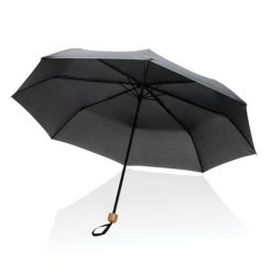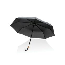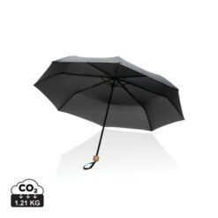 Mały bambusowy parasol 20.5″ AWARE™ RPET z nadrukiem Twojego logo, materiał: metal, rpet, kolor: czarny