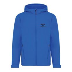 Męska kurtka softshell Iqoniq Makalu AWARE™ z nadrukiem Twojego logo, materiał: poliester, spandex, kolor: niebieski