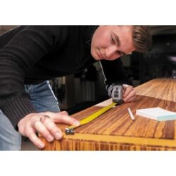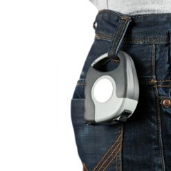 Miara 5 m z karabińczykiem, przycisk samozamykający, żółta taśma o szerokości 19 mm z dwoma silnymi magnesami na zaczepie, obudowa wykonana z ABS, uchwyt z TPR, posiada klip do paska, na obudowie matowa naklejka z PVC pod nadruk, wzór zastrzeżony®, ślad węglowy produktu: 1,38 kg CO2