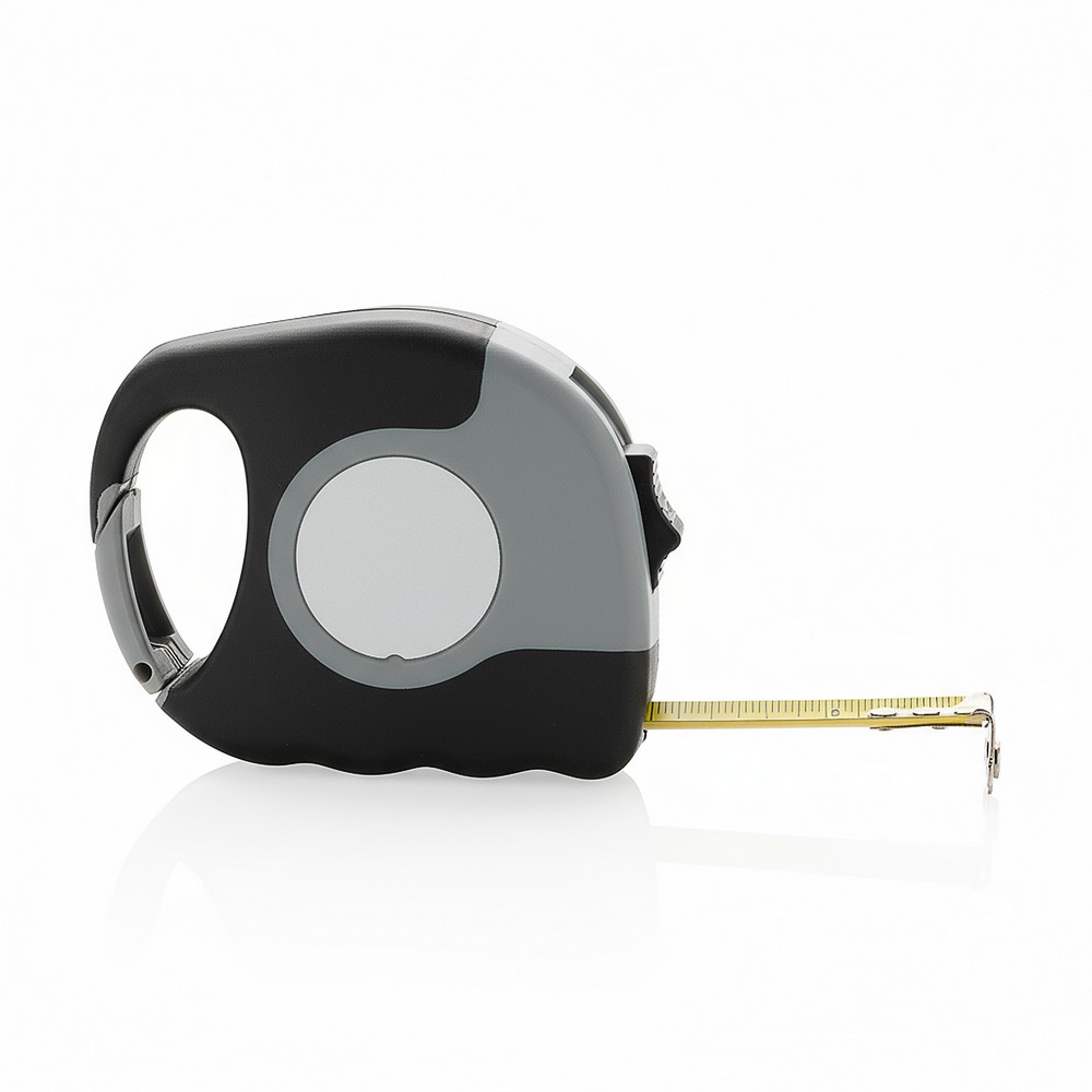 Miara 5m z karabińczykiem z nadrukiem Twojego logo, materiał: plastik, stal węglowa, stal, kolor: szary