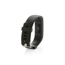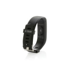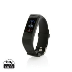 Monitor aktywności Fit Watch 0,96″,BT 5.0, wykonany z ABS z recyklingu, pasek wykonany z TPE z recyklingu, posiada certyfikat RCS (Recycled Claim Standard), całkowita zawartość materiału z recyklingu obliczona w oparciu o wagę całkowitą przedmiotu: 35%, funkcje licznika kroków, śledzenia tętna, mierzenia ciśnienia oraz tlenu we krwi, pomiar czasu snu, pomiar spalonych kalorii, pomiar pokonanej odległości, wodoodporność IPX5 całkowita ochrona przed strumieniem wody płynącej z różnych kierunków z wydajnością do 12,5 litra na minutę, kompatybilny z Androidem 4.4 oraz IOS 8.0 lub nowszymi, czas czuwania do 15 dni, czas pracy do 7 dni, w pudełku kraftowym z certyfikatem FSC® mix, nie zawiera PVC, ślad węglowy produktu: 0,32 kg CO2